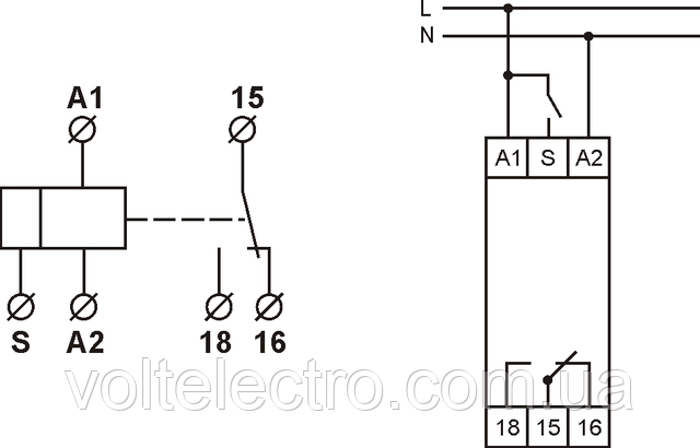 - Візуальна LED-індикація подавання живлення і статусу реле.